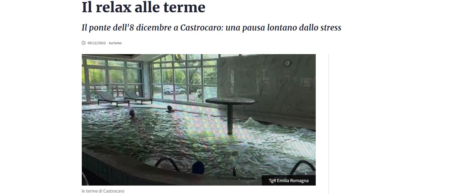 In the report Paolo Pini interviewed Ivan Parodi, director of the Castrocaro spa hotel, and Marco Conti, health director.”