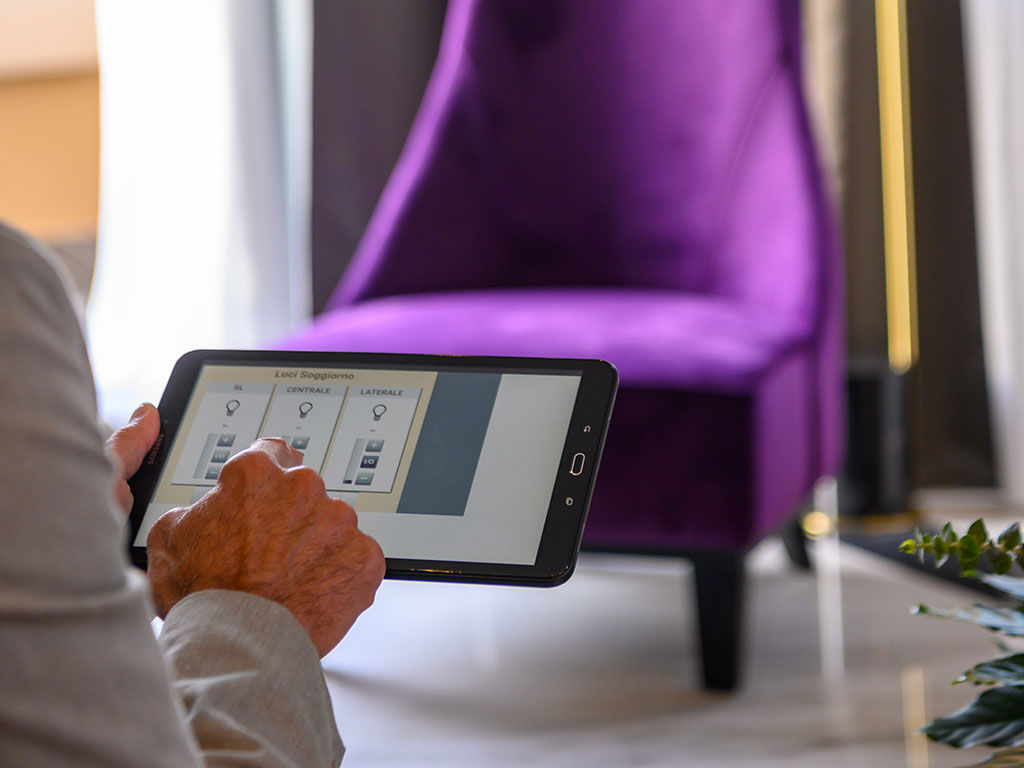 Vista sulla Antica Rocca, accesso con ascensore diretto, camera di 90 mq, terrazza privata di 25 mq con jacuzzi. 3 Smart TV e domotica. Pavimento parquet, doppia camera
